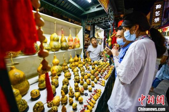 圖為游客購(gòu)買刻葫蘆工藝品。 王斌銀 攝