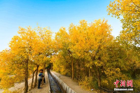 圖為胡楊秋色吸引不少游客和敦煌市民前來(lái)賞秋。 王斌銀 攝