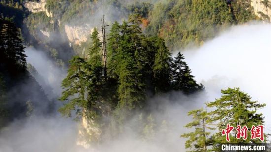 圖為險(xiǎn)峻山峰間云霧繚繞?!●R天云 攝