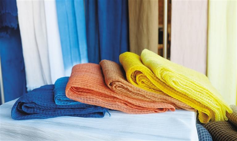 “農(nóng)女手作”中藥材染色絲麻圍巾