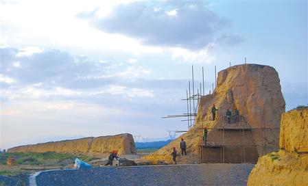長城烽燧修繕(資料圖) 新甘肅·甘肅日報通訊員 翟繼宗