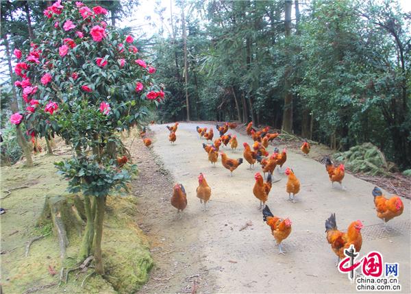 茶花具有“唯有山茶殊耐久,獨(dú)能深月占春風(fēng)”的傲梅風(fēng)骨,又有“花繁艷紅,深?yuàn)Z曉霞”的凌牡丹之鮮艷,因此自古以來(lái)就是極富盛名的木本花卉,在唐宋兩朝達(dá)到了登峰造極之境,直到十七世紀(jì)引入歐洲后,造成轟動(dòng),也因此獲得“世界名花”的美名。九龍街道牛街居委會(huì)小寨土雞生態(tài)產(chǎn)業(yè)園嬌艷的茶花給人一種神圣感,同時(shí)被賦予了一種原始的信仰:山茶是春天的神木,是春天的圣樹(shù)。置身九龍小寨土雞生態(tài)產(chǎn)業(yè)園,來(lái)一場(chǎng)與森林的浪漫邂逅,恍如仙境。園里有枇杷林、櫻桃林、楊梅林、梨樹(shù)林、紅豆杉林、柏樹(shù)林、椿樹(shù)林、油桃林、核桃林、灌木林以及草莓園、蔬菜園、山茶花園、荷花園,樹(shù)下是一群群羽毛鮮亮的土雞悠閑地覓食,好一幅田園風(fēng)景畫!