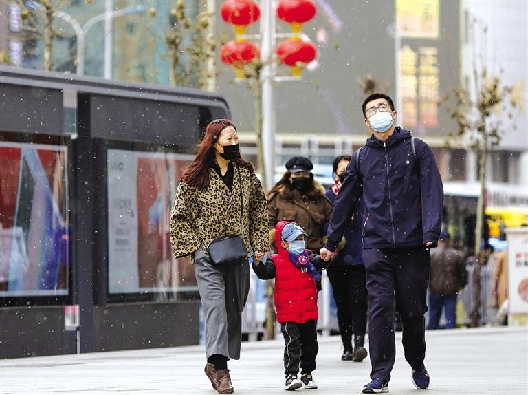 2月28日我市出現降雪天氣,雪花飄落,氣溫也隨之下降,最低氣溫降至-4℃。 記者 馬軍 攝