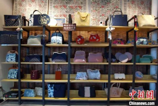 近日,中新網(wǎng)記者在安定區(qū)一家非遺工坊內(nèi)見到祁輝,她身著正紅色漢服,腰間掛著香囊,穿梭于服飾區(qū)、布偶區(qū)和染布區(qū)之間。記者看到,工坊內(nèi)展出商品種類多樣,色彩豐富,包括潮流挎包、時尚發(fā)卡、卡通布偶、可愛抱枕,以及扎染服裝和圍巾等,在極具古風創(chuàng)意的同時,還不乏國潮設計理念。