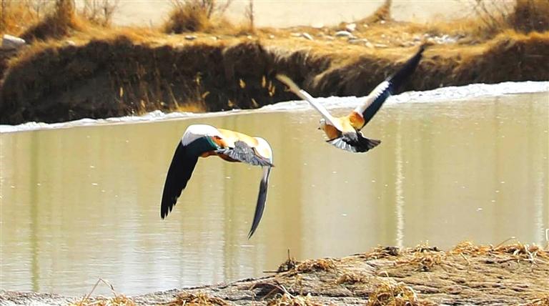 3月下旬,在武威市天??h華藏寺鎮(zhèn)金強(qiáng)河邊,到處都有赤麻鴨和白鷺的身影。它們或自由游弋,或盤旋飛翔……
