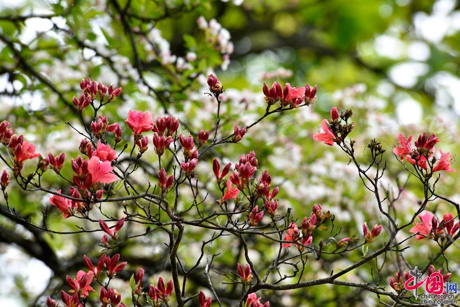 由于黃山山上氣溫較低,當(dāng)山下春色褪盡,花開凋零,五月初的黃山之巔才有初春的景象,樹掛新綠,空氣中彌漫著嫩綠和花兒的芳香;最絢麗的高山杜鵑花競相開放,峭壁上,深坳里,路旁邊,把黃山裝點得分外妖嬈,是這個季節(jié)最大的亮點,黃山的植物物種最具有多樣性的景區(qū),還有許多有名或無名的花在各自特定的時段綻放。