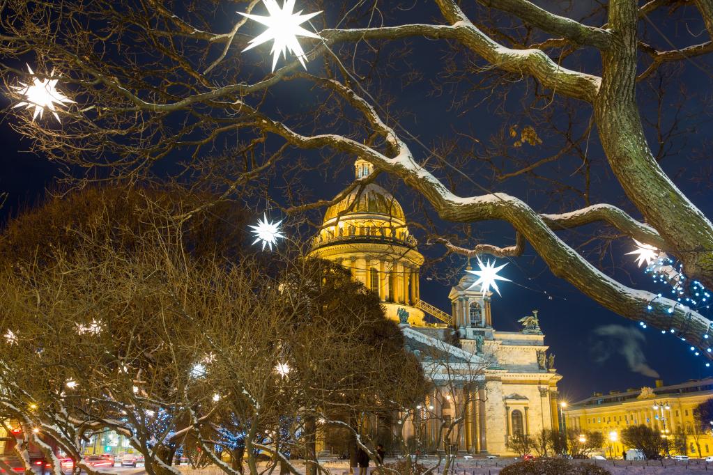這是12月24日拍攝的俄羅斯圣彼得堡伊薩基輔教堂。