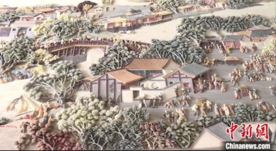 彩石鑲嵌技藝是國家級非物質(zhì)文化遺產(chǎn),在浙江省溫州市瑞安市,民間工藝大師李成者等人耗時3年,制作巨幅彩石鑲嵌作品《清明上河圖》,重現(xiàn)彩石鑲嵌非遺技藝的獨特魅力。