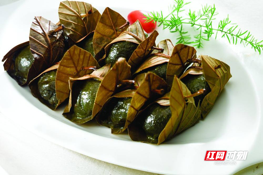 蒿草洗干凈后剁碎煮熟,同糯米磨成米粉揉在一起,往里面包入炒好的臘肉餡,便制成了蒿子粑粑。蒸或煎炸后,蒿草的清香融合了臘肉的咸香,每一口都是春天的味道。此外,也有以芝麻糖、紅豆為餡兒的,各有不同的風味。