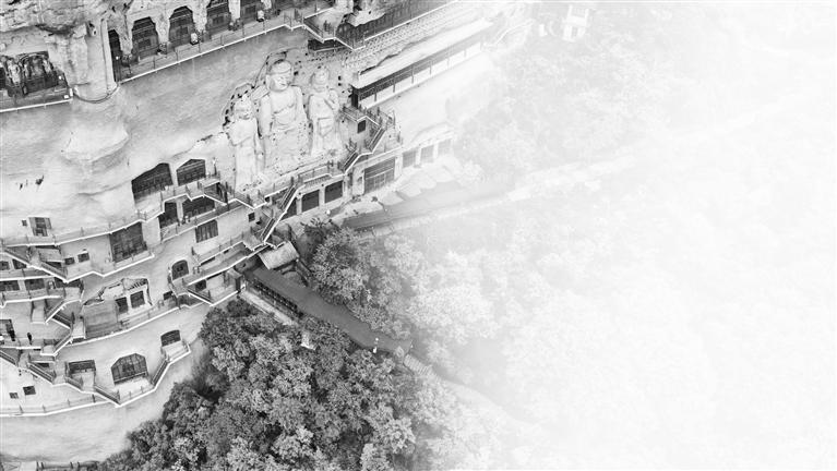 麥積山石窟一景。