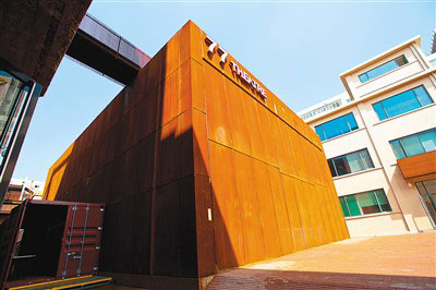 沿著園區(qū)里迂回旋轉(zhuǎn)的鋼梯來到樓頂,眼前豁然開朗——與園區(qū)一街之隔有中國(guó)美術(shù)館、三聯(lián)書店,向西是北大紅樓舊址,向南是北京人民藝術(shù)劇院,向北則是中央戲劇學(xué)院。“我們?cè)谡{(diào)研中發(fā)現(xiàn),周邊戲劇、影視資源非常豐富,于是考慮將園區(qū)定位與東城區(qū)推進(jìn)‘戲劇之城’建設(shè)發(fā)展的方向相契合。”77文創(chuàng)園運(yùn)營(yíng)方、東方道樸公司總經(jīng)理李明說。
