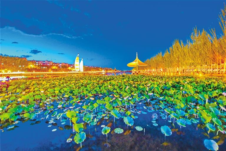 敦煌大漠荷花盛開。奔流新聞·蘭州晨報通訊員 王斌銀 攝