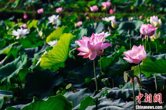 荷花競(jìng)相開(kāi)放,嬌艷清新惹人醉。 李南軒 攝