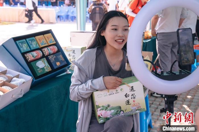主播現(xiàn)場(chǎng)直播帶貨,銷(xiāo)售建蓮。 李南軒 攝