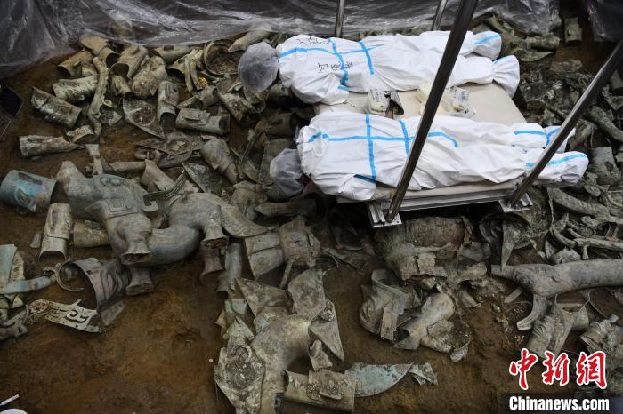 8號(hào)祭祀坑等待提取的精美文物?!埨?nbsp;攝
