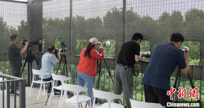 圖為鳥(niǎo)類(lèi)攝影愛(ài)好者在觀(guān)鳥(niǎo)平臺(tái)上進(jìn)行拍攝?!∩G锶A 攝