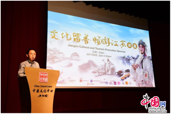 由江蘇省文化和旅游廳主辦、江蘇旅游(新馬)推廣中心協(xié)辦,新加坡中國文化中心、中國駐新加坡旅游辦事處及新加坡江蘇會(huì)全力支持的“文化留香·暢游江蘇”講座,于2022年7月23日(星期六)在新加坡中國文化中心4樓劇場舉行。江蘇省文化和旅游廳副廳長李川通過連線參與本次活動(dòng),新加坡旅游局助理署長(國際司)陳蕙敏、中國文化中心兼中國駐新加坡旅游辦事處主任肖江華、江蘇省駐新加坡經(jīng)貿(mào)代表處主任代表沈立國,以及來自新加坡文化藝術(shù)界、旅游界、商界、社團(tuán)、新聞媒體及市民大眾等逾200名觀眾現(xiàn)場出席活動(dòng)。