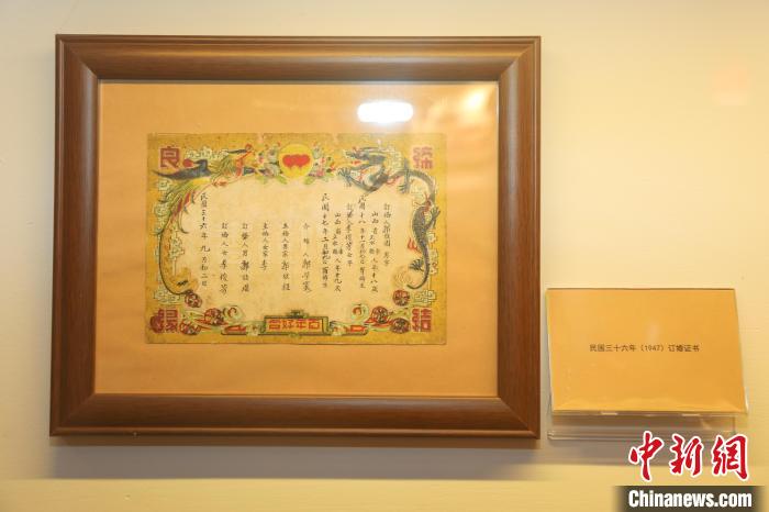 圖為博物館展出的民國時期的訂婚證書?!⒘?nbsp;攝