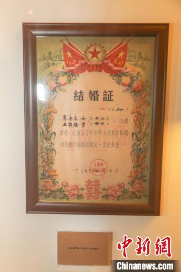 圖為博物館展出的建國初期的結(jié)婚證。 劉力鑫 攝