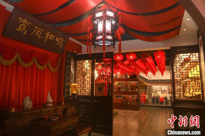 圖為博物館內(nèi)布置的中式傳統(tǒng)風格新婚洞房?!⒘?nbsp;攝