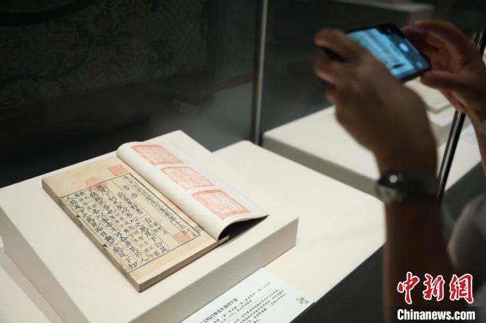 記者3日在展覽現(xiàn)場(chǎng)看到,重點(diǎn)展出的珍貴古籍有宋紹定六年(1233)臨江軍學(xué)刻本《朱文公校昌黎先生集四十卷》,經(jīng)文徵明、王世懋、季振宜等明清藏書名家遞藏,世所罕見,具有極高的文獻(xiàn)和版本價(jià)值;元大德九年(1305)太平路儒學(xué)刻本《漢書一百卷》版本珍貴,但之前地腳處書葉、襯紙紙張表面生有大量霉斑,并存在泥漬、糟朽、殘損等,修復(fù)后方能一睹真容,充分體現(xiàn)了修復(fù)人員化腐朽為神奇的力量;明成化九年(1473)內(nèi)府刻本《資治通鑒綱目五十九卷》,由朱熹手定其綱、朱熹門人趙師淵撰寫其目,因該本原瓷青絹質(zhì)書衣破損面積大,故采用了補(bǔ)絹仿制與染色、做舊等修復(fù)方法,呈現(xiàn)出補(bǔ)絹與原書衣高度匹配的自然老化效果,非常適合觀眾現(xiàn)場(chǎng)感受“整舊如舊”的古籍修復(fù)原則。