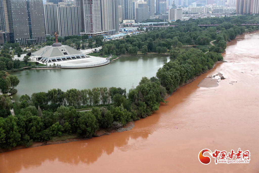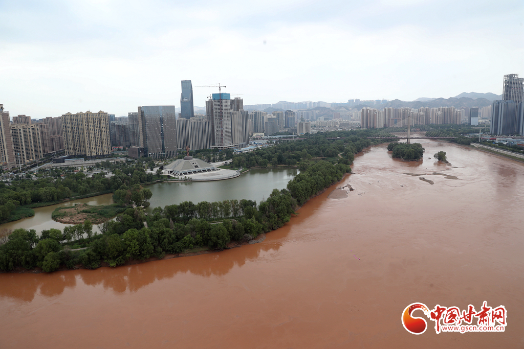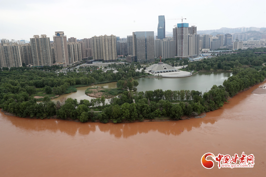 近日,受降水天氣影響,黃河蘭州段仿佛成“紅河”,河水與沿岸蔥郁的濕地公園更顯風致,半是青綠半是黃,別有一番情趣。