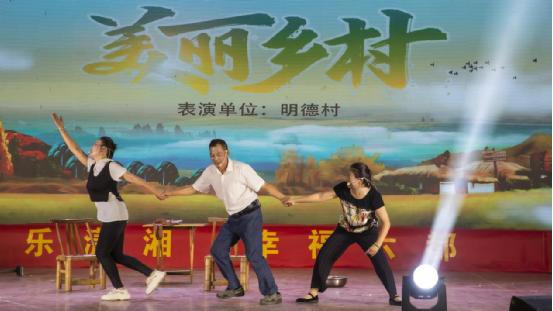 明德村打造“最美瀟湘文化陣地”美名遠揚,為明德村“文化服務走出去”打下了堅實基礎。村里的文藝團隊除了義務服務外,平時還經(jīng)常應邀到其他外村表演,獲取點額外收入。村支兩委乘勢而上,把文化優(yōu)勢變成產業(yè)優(yōu)勢,把文化產業(yè)變?yōu)榇迕裰赂坏?ldquo;法寶”與鄉(xiāng)村振興的“加速器”。