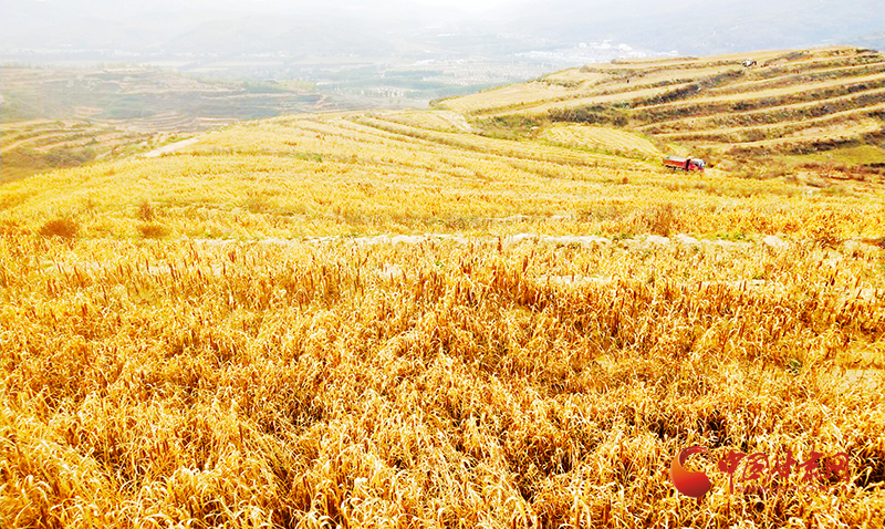“看著金黃的谷田和一個(gè)個(gè)沉甸甸的谷穗,心里別提有多高興和踏實(shí)了。”看著傾注了自己一年心血和汗水的谷子喜獲豐收,村黨支部書(shū)記荊小軍臉上掛滿豐收的喜悅。