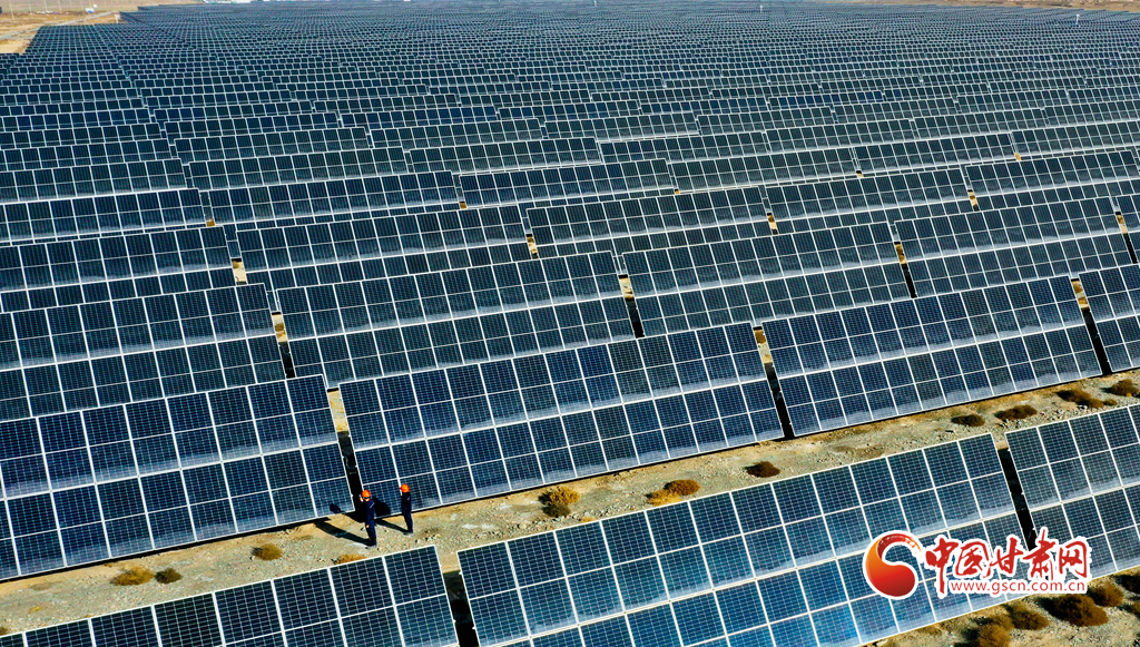 11月17日,甘肅省張掖市甘州區(qū)南灘龍?jiān)垂夥l(fā)電場,綠色能源正源源不斷地輸入電網(wǎng)。