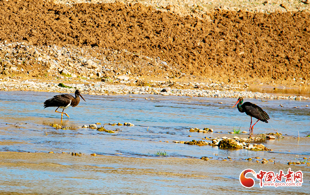近日,大批被比喻為鳥(niǎo)中“大熊貓”的黑鸛在平?jīng)鍪谐缧趴h汭河棲息,它們身軀挺拔,纖頸長(zhǎng)腿,姿態(tài)優(yōu)美,或悠閑覓食,或展翅翱翔。