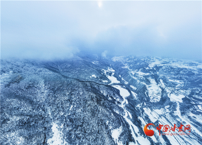 雪花像是美麗的精靈飄落山間,又像是上帝手中的畫筆,勾勒出了一幅優(yōu)美的水墨世界,正如詩句一樣“白雪卻嫌春色晚,故穿庭樹作飛花”。遠處大霧又為關(guān)山蓋上了神秘的面紗,層層疊疊,仙氣繚繞,令人嘆為觀止。