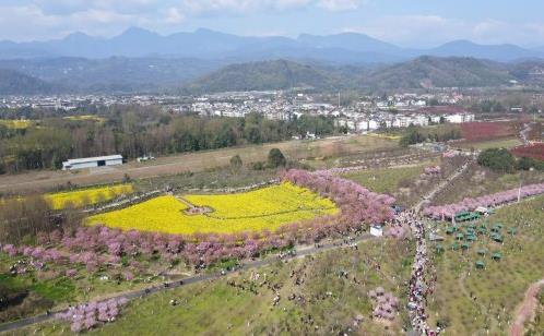 這是3月8日拍攝的都江堰市青城山鎮(zhèn)“問花村”景色(無人機(jī)照片)