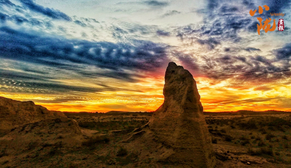 茫茫戈壁,唯有這座古老的烽燧,寒來暑往,飽經(jīng)風(fēng)霜,見證著世間的滄桑、歲月的變遷。