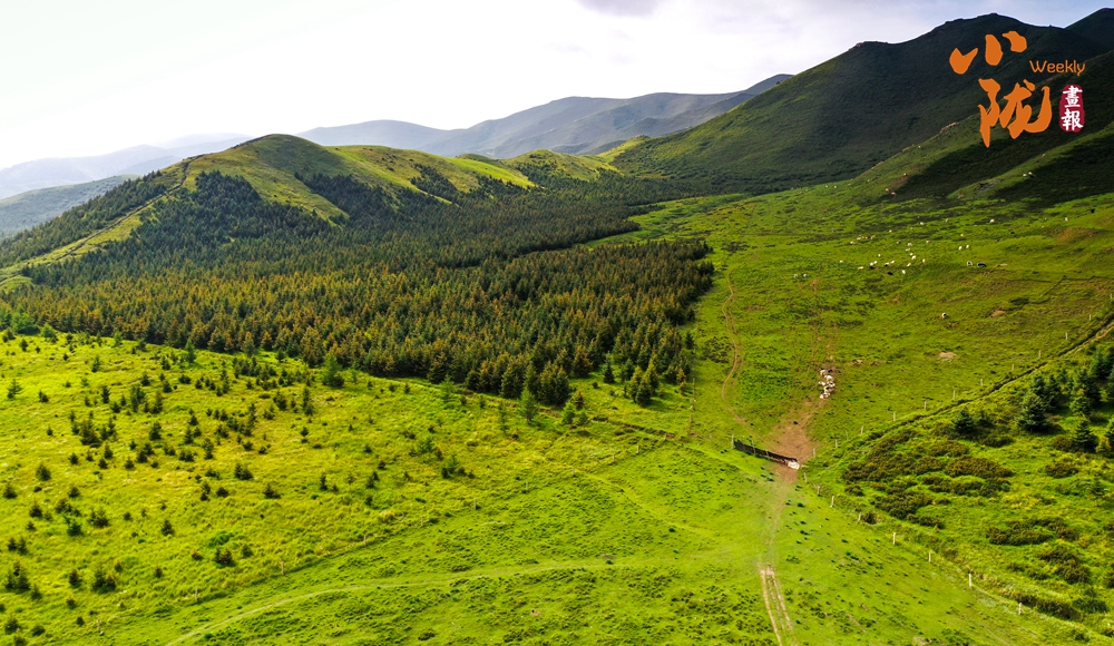極目遠(yuǎn)望,隨著山坡緩緩蔓延開來的草原,被溫柔的落日余暉浸染,變得美不勝收,盡收眼底。
