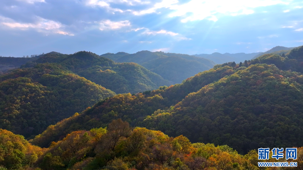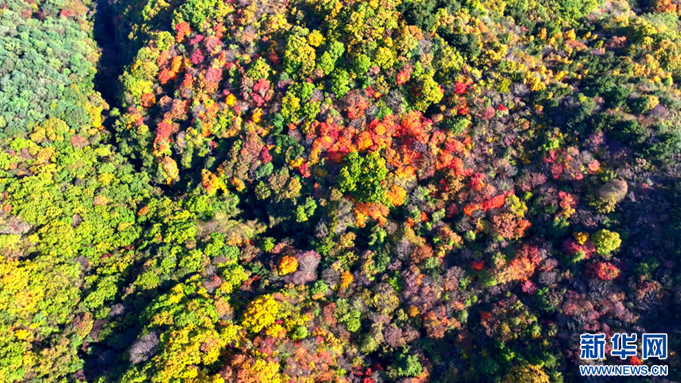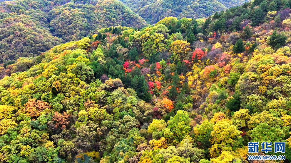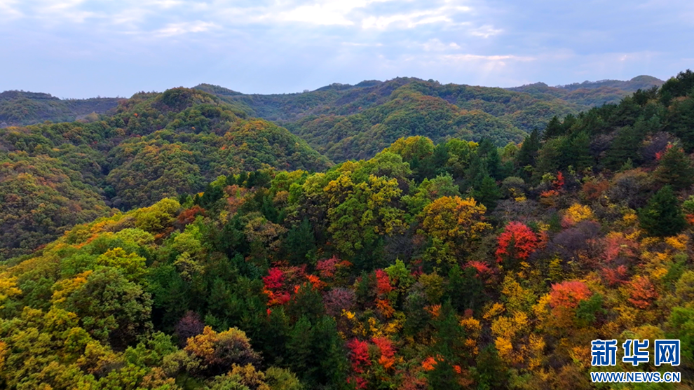 深秋時節(jié),甘肅省平涼市崇信縣的唐帽山層林盡染,群山疊彩,勾勒出一幅絢麗多姿的美景圖。(圖片:高亮 文字:關改琴)