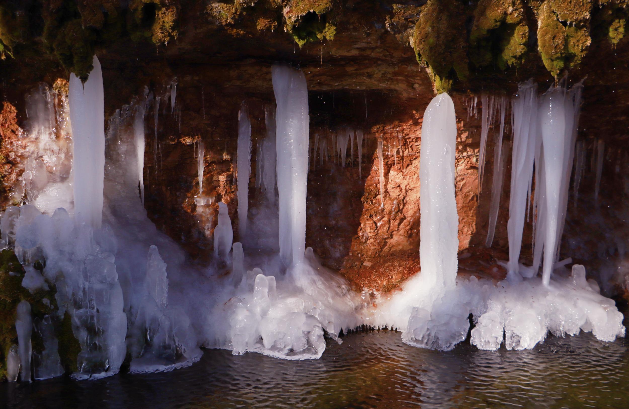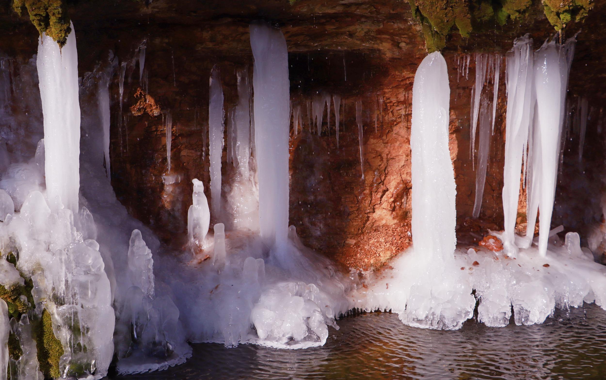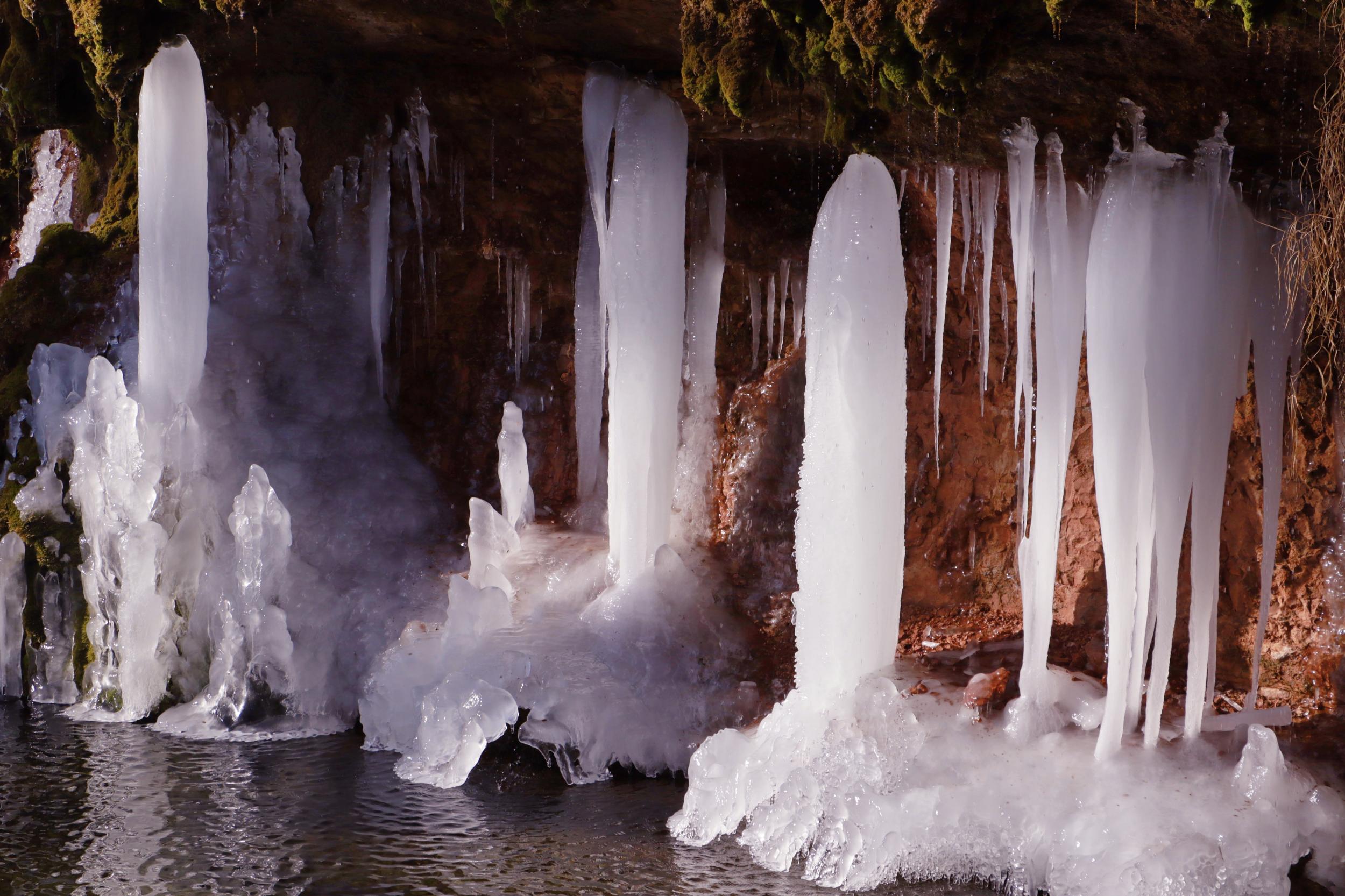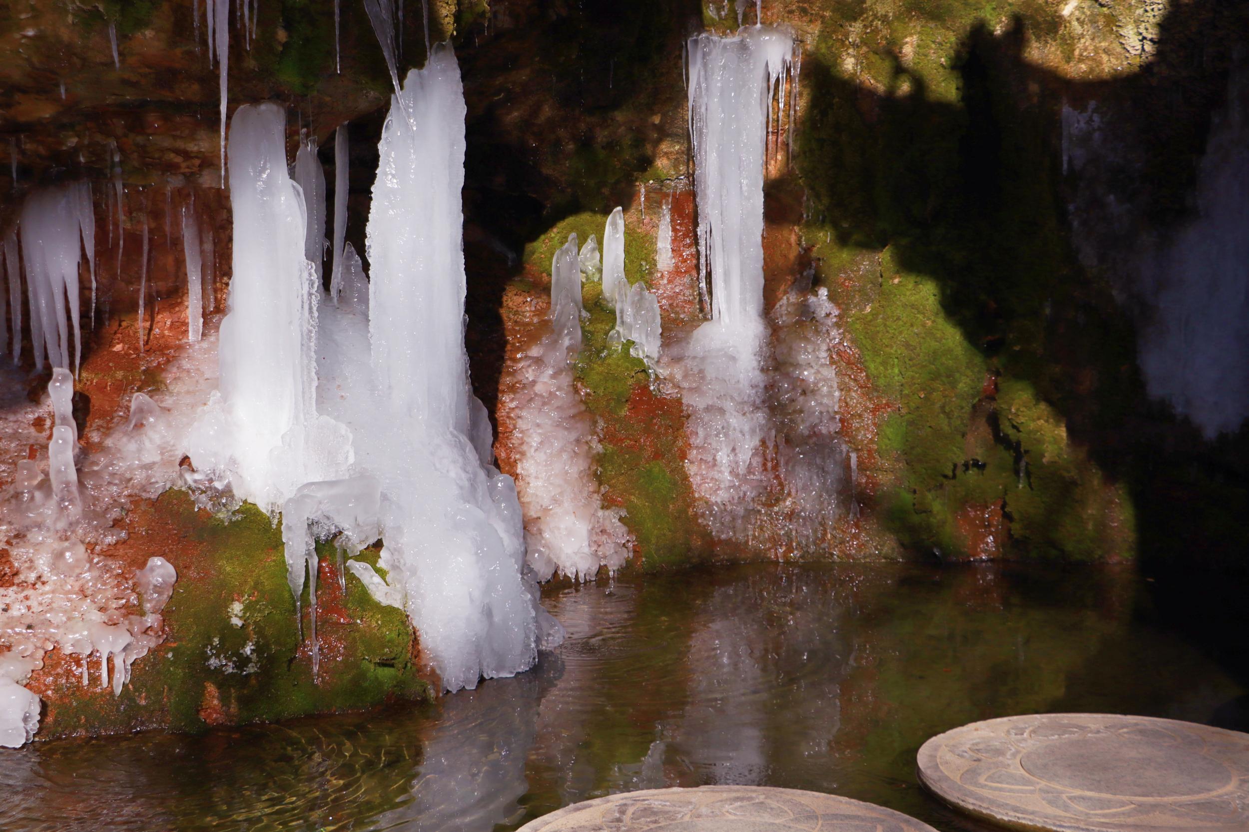 連日來,崇信縣持續(xù)降溫,AAAA級旅游景區(qū)龍泉寺泉水凝結(jié)成奇特秀麗的冰掛、冰柱、冰花美景,懸掛于山間,如萬把銀色寶劍垂吊,展現(xiàn)著冰肌雪骨的風(fēng)姿,似盞盞熒光閃爍,在陽光的照耀下熠熠生輝、耀眼奪目,引來不少游客拍照觀賞。(崇信縣融媒體中心記者:孫淑霞  張百耀)