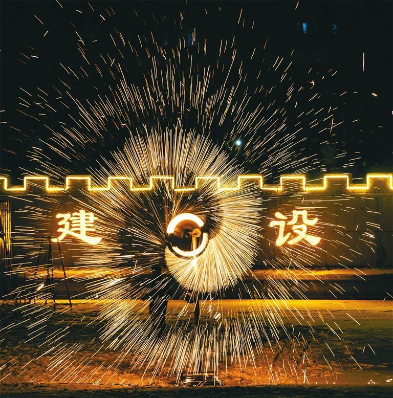 2月21日晚,敦煌市“火樹銀花·瑞龍迎春”打鐵花民俗展演活動在黨河風(fēng)情線舉行,喜迎元宵佳節(jié)。朵朵鐵花凌空綻放,流光溢彩,吸引了眾多市民游客前來觀賞。 敦煌“打鐵花”歷史久遠(yuǎn),起源于唐宋,后經(jīng)千年演變,成為春節(jié)期間一項(xiàng)富有地方特色的民俗文化活動。