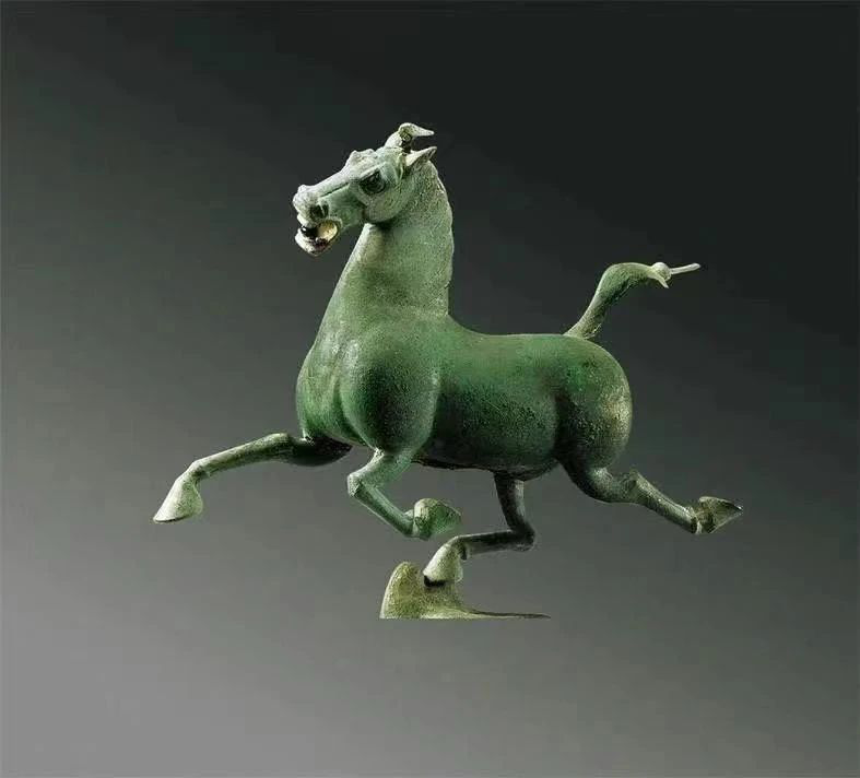 銅奔馬高34.5厘米,長45厘米,寬13.1厘米,重7.3千克,三足騰空,一足超掠飛鷹,昂首長嘶,以矯健之姿疾足飛馳,僅一足著力支撐起馬身,展現(xiàn)了當(dāng)時(shí)極其卓越的工藝水平。