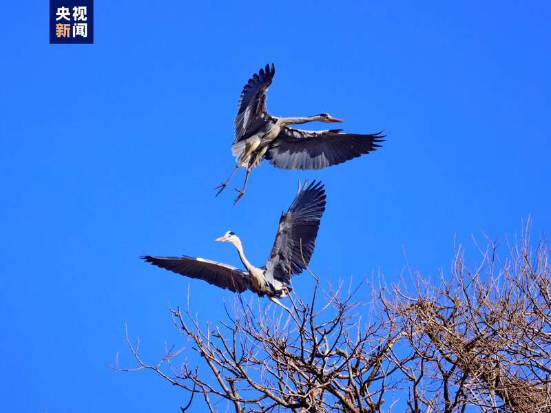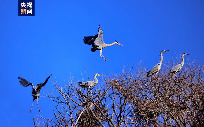 隨著氣溫回升,位于子午嶺腹地的甘肅省慶陽(yáng)市合水縣太白鎮(zhèn),有成群結(jié)隊(duì)的蒼鷺如約從南方飛來(lái)。它們或落在樹(shù)冠,偎依在一起,或維修著往年搭建好的巢穴,開(kāi)啟新一輪的繁衍生息。子午嶺腹地是天然的生態(tài)林區(qū),近年來(lái),當(dāng)?shù)鼐C合實(shí)施固溝保塬、退耕還林、植樹(shù)造林等工程,森林覆蓋率達(dá)到69.82%,引來(lái)眾多珍稀鳥(niǎo)類(lèi)繁衍生息。(總臺(tái)記者 焦?。?/p>