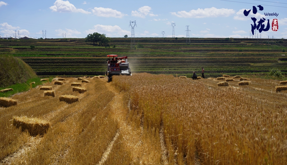 穗舞夏風(fēng),麥浪滾滾。一塊塊高標(biāo)準(zhǔn)糧田內(nèi),大型收割機(jī)開(kāi)足馬力、轟鳴向前,小麥?zhǔn)崭?、麥穗脫粒、秸稈還田,一幅豐收景象。