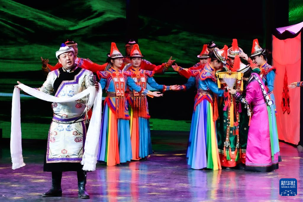 7月12日,張掖市肅南縣非物質(zhì)文化遺產(chǎn)保護傳承中心演員表演國家級非遺代表性項目裕固族婚俗。新華社記者 郎兵兵 攝
