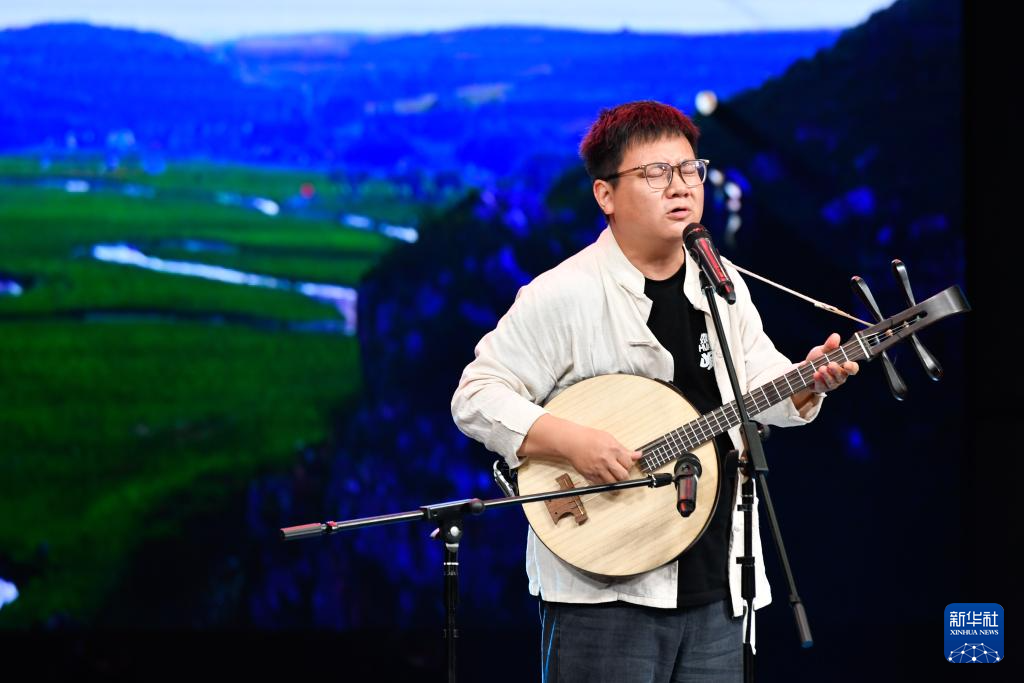 7月12日,定西市岷縣“花兒”歌手徐卓演唱“洮岷花兒”《不唱花兒心不甘》。新華社記者 郎兵兵 攝