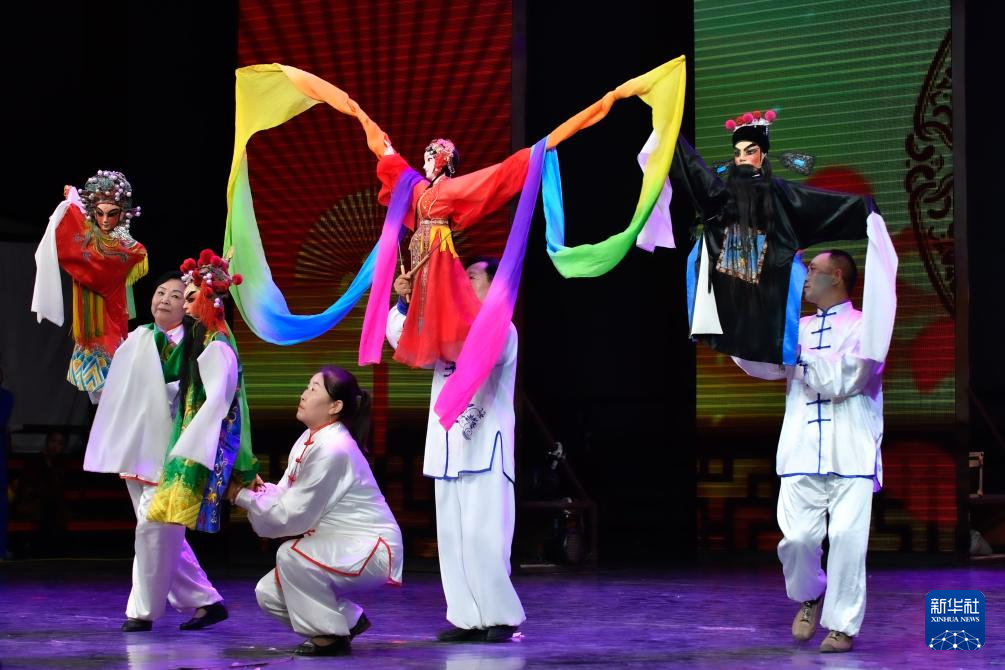 7月12日,演員表演金昌木偶戲《秦聲秦韻》。新華社記者 郎兵兵 攝