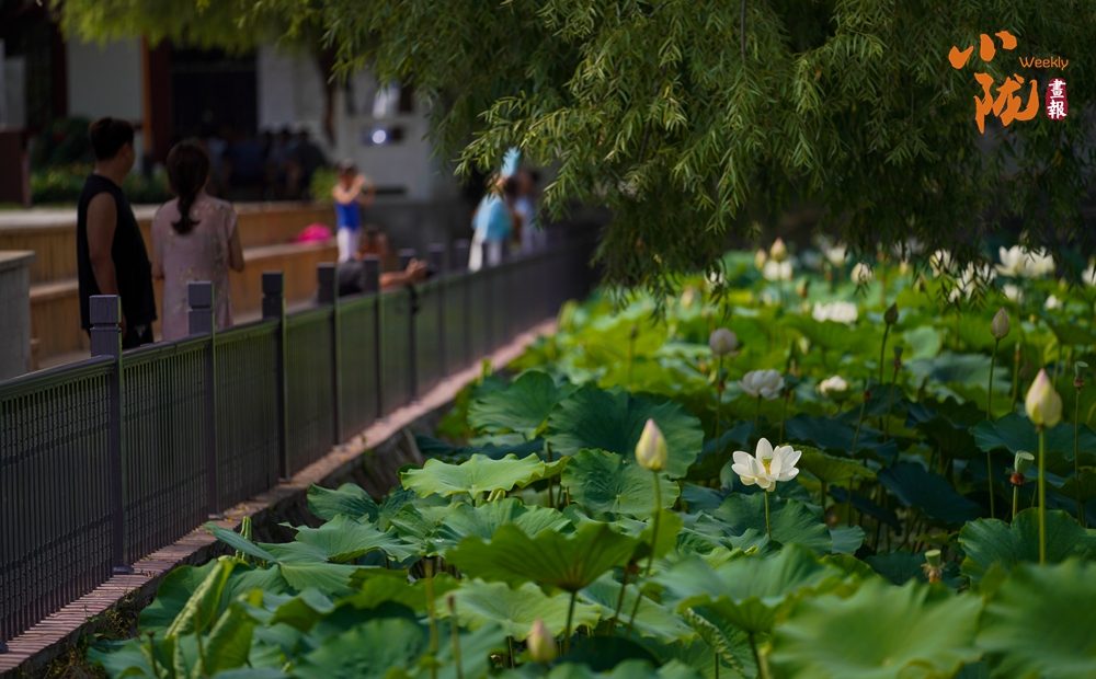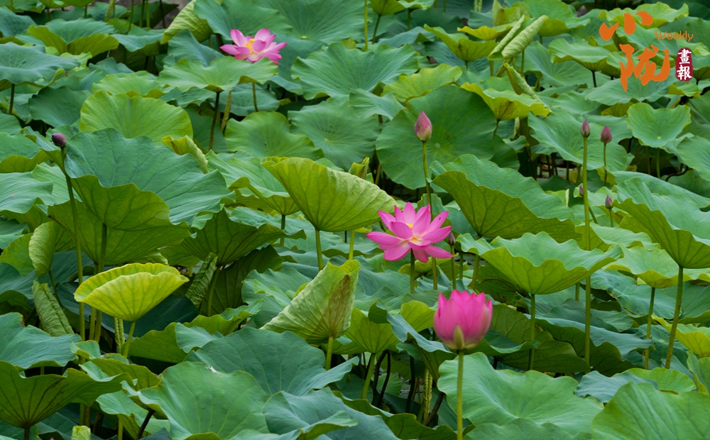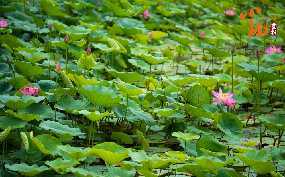 大片的荷葉層層疊疊,一支支荷花婷婷水中,在蓮葉的映襯下展現(xiàn)出更加嬌媚動人的風韻,為炎炎夏日增添了幾分詩情畫意,讓前來觀賞的群眾領略了荷葉田田的生態(tài)美景。