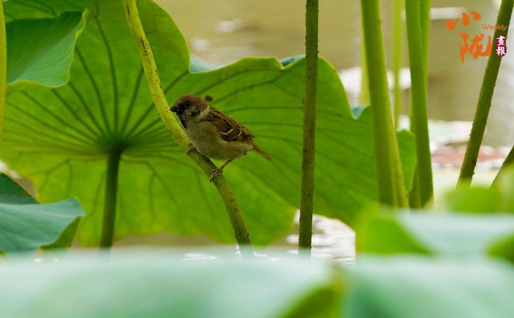 清涼的池水,翠嫩的小荷,乘涼的麻雀,構成了一幅夏日幽情逸趣的畫面。