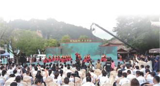 主詩會現(xiàn)場,氣勢恢弘的武術表演,精彩絕倫的拿手絕技,美輪美奐的崆峒山景,蕩氣回腸的武林唱響,組成一幅幅震天動地的美麗畫卷。伴著《少林,少林》《中國功夫》的歌聲,中岳武校功夫表演團數(shù)套行云流水的少林武術,豪氣干云、笑逸蒼茫,一招一式古風流存,展現(xiàn)出少林武者英雄豪杰的氣魄與豪邁,演繹了少林武魂的禪武精神。這些平常只能在電影或電視中才可以看到的少林武功,而今就在眼前,觀眾們紛紛報以熱烈掌聲。武與舞的“對話”,武與舞的“相遇”詮釋鐵血丹心、俠骨柔情。由平?jīng)鰫郯鹏嵛璧概嘤栔行膸砦璧浮锻跄敢寡纭?,通過王母夜宴的歡樂場景,將西王母和周穆王相愛的神話故事深情講說,情濃處,千回百轉,柔腸百結。一曲《刀劍如夢》穿越時空而來,歌手用獨特的嗓音,將這首歌演繹得淋漓盡致,將觀眾帶入了一個感性而深沉的氛圍,帶領我們回到了那個充滿江湖氣息的瑰麗世界。“滄海一聲笑,滔滔兩岸潮,浮沉隨浪只記今朝,蒼天笑,紛紛世上潮,誰負誰勝出天知曉滄海笑……”一曲《滄海一聲笑》,營造了一股濃濃的中國俠士逍遙風,旋律步步低落,先抑后揚,峰回路轉,觀眾隨著音樂的意象一步步陷入蒼涼和寂寥中。隨著歌曲的高跌起伏,一個個精彩的片段定格為現(xiàn)場觀眾一張張手機影像。