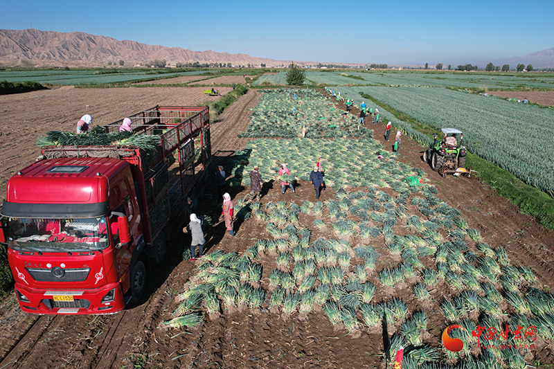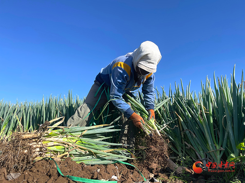金秋時節(jié),山丹縣清泉鎮(zhèn)南關村的260畝大蔥迎來了豐收。