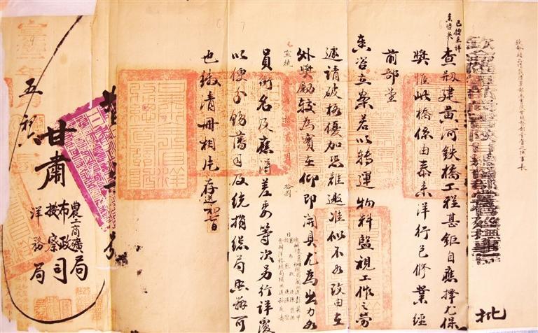 清宣統(tǒng)二年(1910年)5月,陜甘總督長庚褒獎修建黃河鐵橋官員批文。