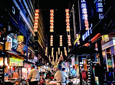 從亞歐商廈向東行,不久便到了張掖路步行街。夜幕降臨,夜市攤車(chē)的燈帶漸次亮起,也為這座城市的夜生活打開(kāi)了開(kāi)關(guān)。