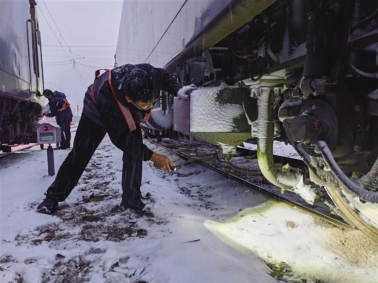 受今年入冬以來(lái)最強(qiáng)寒潮、雨雪天氣影響,11月23日20時(shí)開始,中國(guó)鐵路蘭州局集團(tuán)有限公司蘭州西機(jī)務(wù)段調(diào)車車間擔(dān)當(dāng)管內(nèi)的武威南、打柴溝等地區(qū)氣溫接近零下15℃,蘭新線蘭州北至武威南、蘭青線部分線路已普降中到大雪,調(diào)車車間干部職工以雪為令,精心組織、主動(dòng)應(yīng)對(duì),采取有力措施最大限度降低不良天氣給行車安全帶來(lái)的影響,全力保證疆煤外運(yùn)人員供應(yīng),確保列車安全暢通。